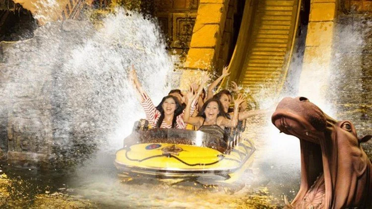 Lost City: Sebuah area petualangan yang penuh dengan hutan lebat dan sungai yang bisa dijelajahi melalui wahana air Jelajah.